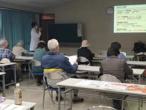 講師は マツモトキヨシたなか店 の 薬局長 小澤先生 でした。お薬のお話もしていただき とてもわかりやすい内容でした。認知症のテスト(?)もあり、少しドキドキでした。