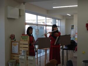 12/25にほくほくカフェを開催しました。今回はクリスマス会を行いました。”8818(パパイヤ)”によるフルートとクラリネットのミニコンサートに始まり、座談会や折り紙をしたり、楽しい会となりました。