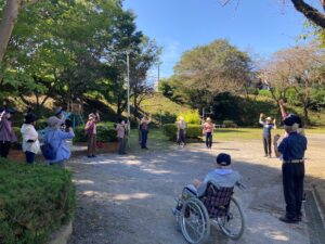 心地良い秋風を感じながら体操をした後、大洞院まで途中休憩をしながら散策しました。オレンジフレンズさんが車椅子を押したり、コースを選定して下さるなど、ご協力いただき助かりました。次回は 10月26日(水) です。