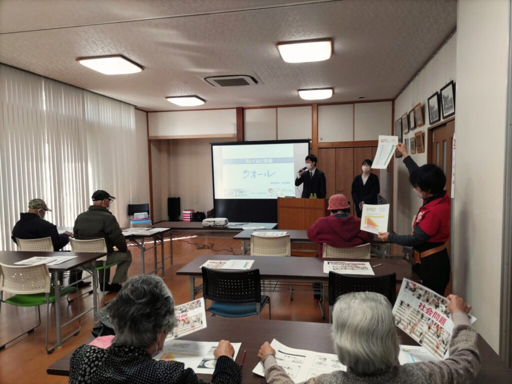 2月にフレイル予防連続講座(全3回)を小青田ふるさとセンターにて実施しました。①フレイルチェック ②体操講座③栄養とお口の健康の講座をしました。