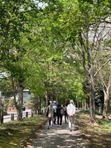 お天気は良かったのですが、時より強風が吹く中、ビレジの邸宅に咲いた草花に足を止めながら新緑のお散歩を楽しむことができました。次回は 5月10日(水) です。