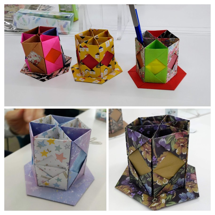 今回は、折り紙の先生にお越しいただき、ペン立てを教えてもらいながら