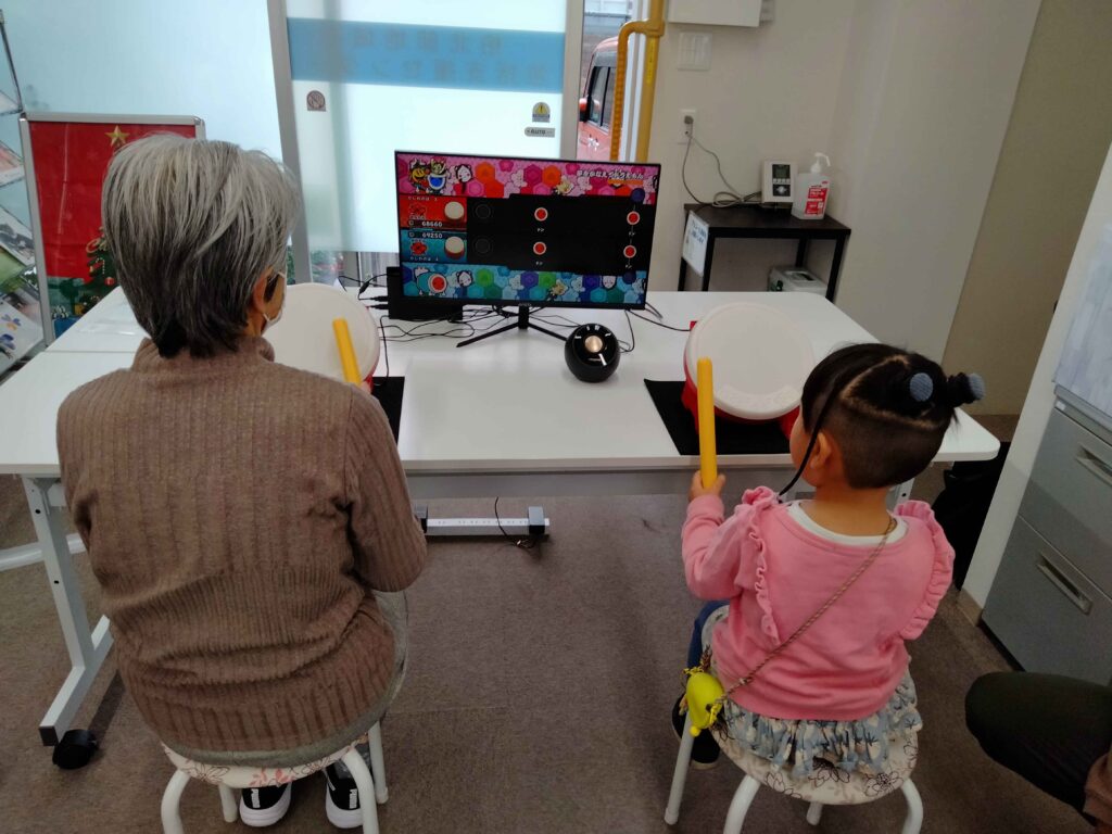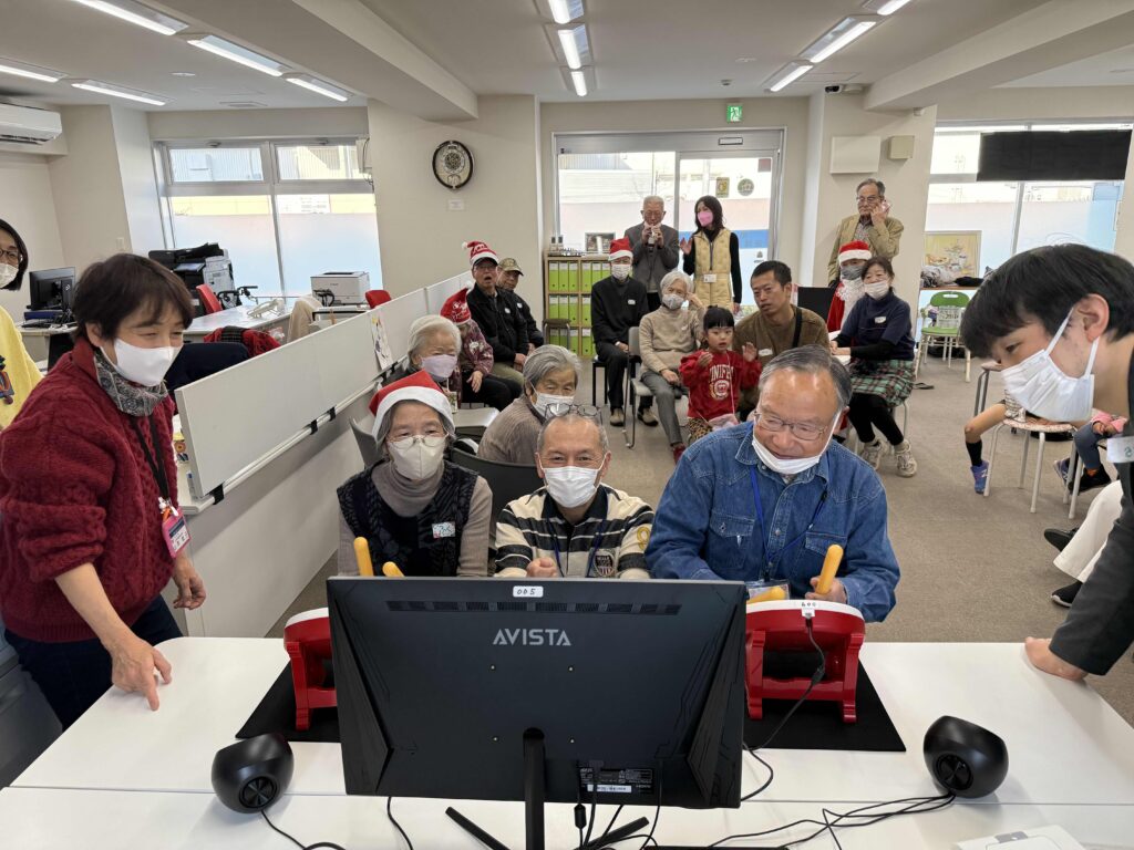今回のほくほくカフェは、親子3組を含め総勢24名とたくさんの方にご参加いただき、柏の葉eスポーツ研究会のご協力のもと、太鼓の達人を通して世代間交流を行いました。