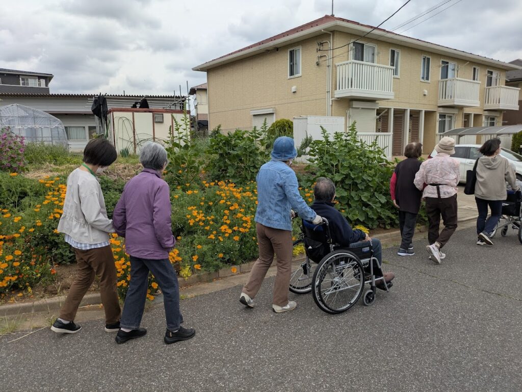 曇り空ではありましたが、心地良い風を感じながら、看護学生含め15名で正連寺周辺をお散歩しました。